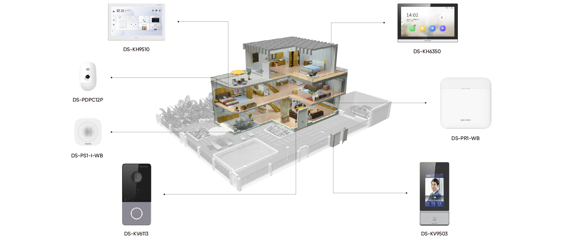 · Villas: The villa solution provides useful functions for every member of the home. Users can call multiple indoor stations at the same time and unlock a door at any of the indoor stations. They can also receive all call information and unlock doors remotely and conveniently via Hik-Connect Mobile App. Practical functions for every member of the home, including remote unlocking via the Hik-Connect mobile app.